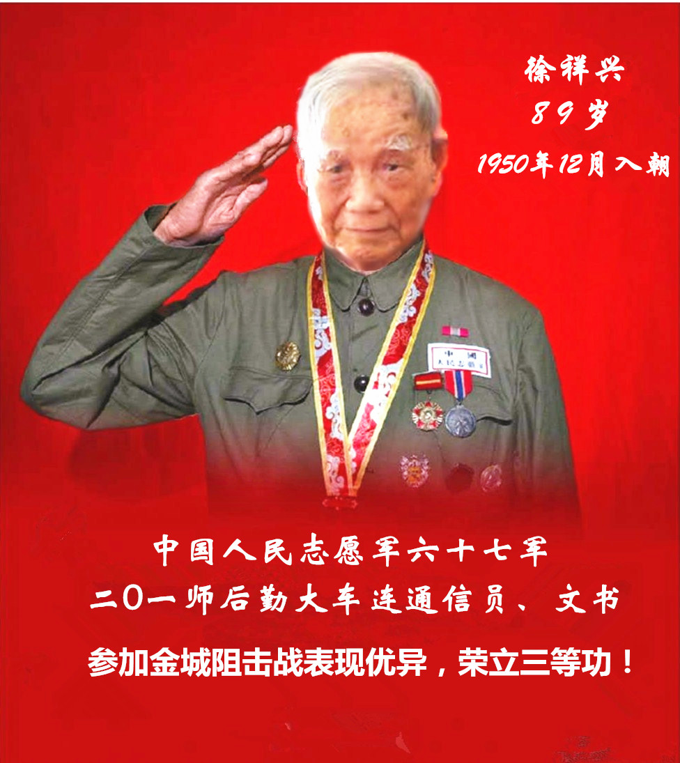 透过泛黄的简历,我看到了雄赳赳跨过鸭绿江的徐祥兴们,看到了冒着敌机疯狂扫射,运送武器弹药的徐祥兴,看到了战火硝烟中满脸疲倦、但却无比坚毅的徐祥兴,看到了无数像他一样英勇作战的革命先辈们,我的内心一次次被感动着、震撼着,请记住千千万万像徐祥兴一样的英雄们。